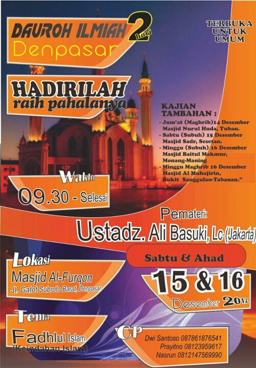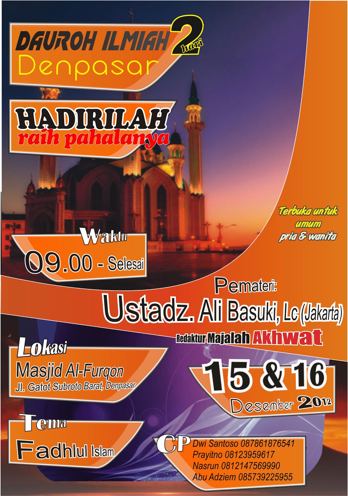 Menjelang Dauroh Overload di kota Denpasar Bali, salah seorang ikhwah bertanya kepada sang Badrimin Munatour (08113868494) terkait acara dauroh tersebut